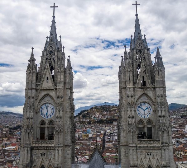Our tour begins at 8:00 AM at the designated meeting point. We will then proceed to the Basilica del Voto Nacional, a neo-Gothic religious building in the historic center of Quito. Due to its size and style, it was considered the largest neo-Gothic temple in the Americas and the tallest religious temple in Spanish America until 2017. It is located in the Santa Prisca sector, at the intersection of Carchi and Venezuela streets, next to the Oblate Fathers’ convent. If you wish, you can climb the towers (OPTIONAL NOT INCLUDED) for a privileged view of Quito’s historic center.