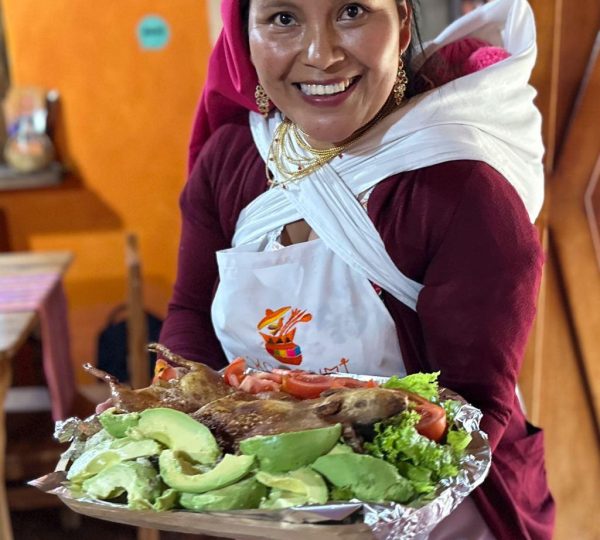 A 25 minutos se encuentra la parroquia de Gonzales Suarez donde se encuentra ubicado el proyecto Sacha Warmikuna (mujeres de la montaña). Aquí degustaremos de un delicioso almuerzo y de un recorrido por las astromelias, el huerto, las rosas y las fresas y serás parte de la preparación del ají.